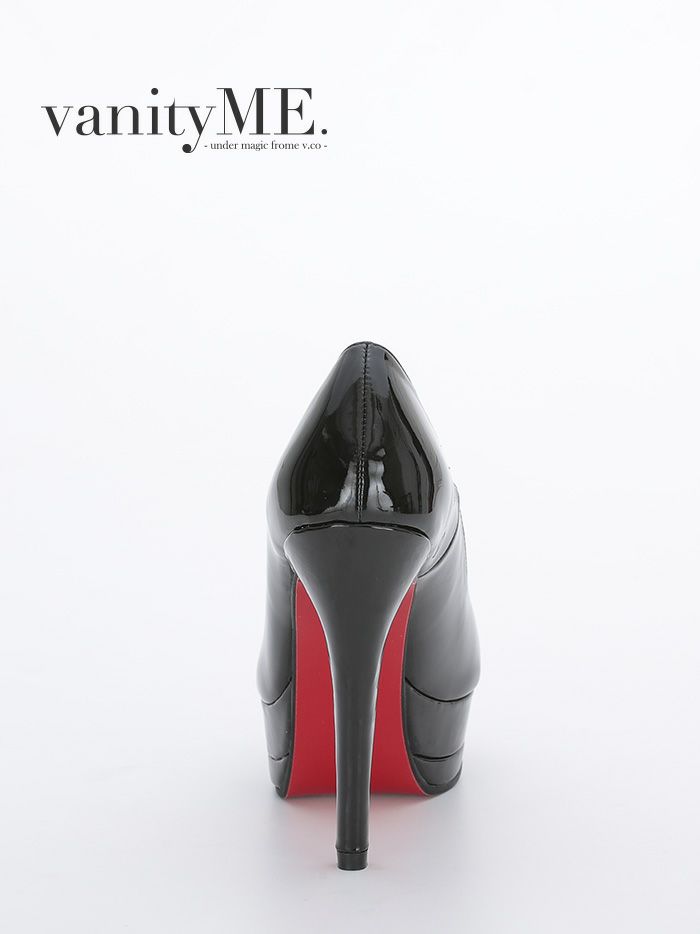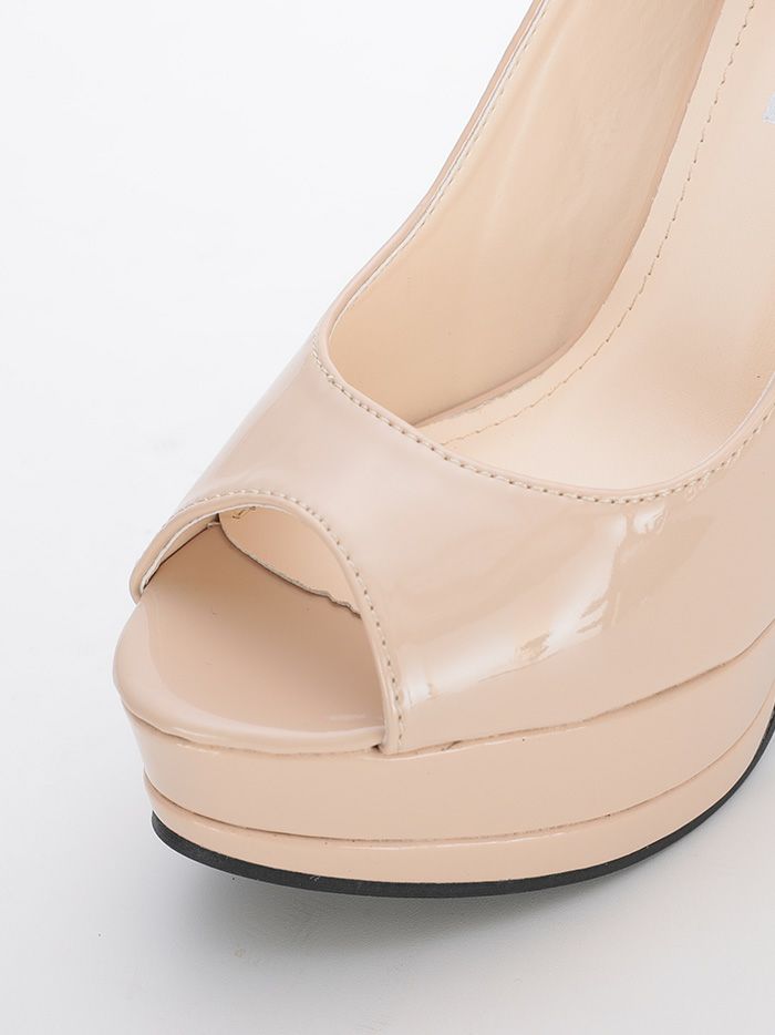 5. BENEDETTA オープントゥ エナメル プラットフォーム パンプス ベージュ・ブラック vsh-am-4001
