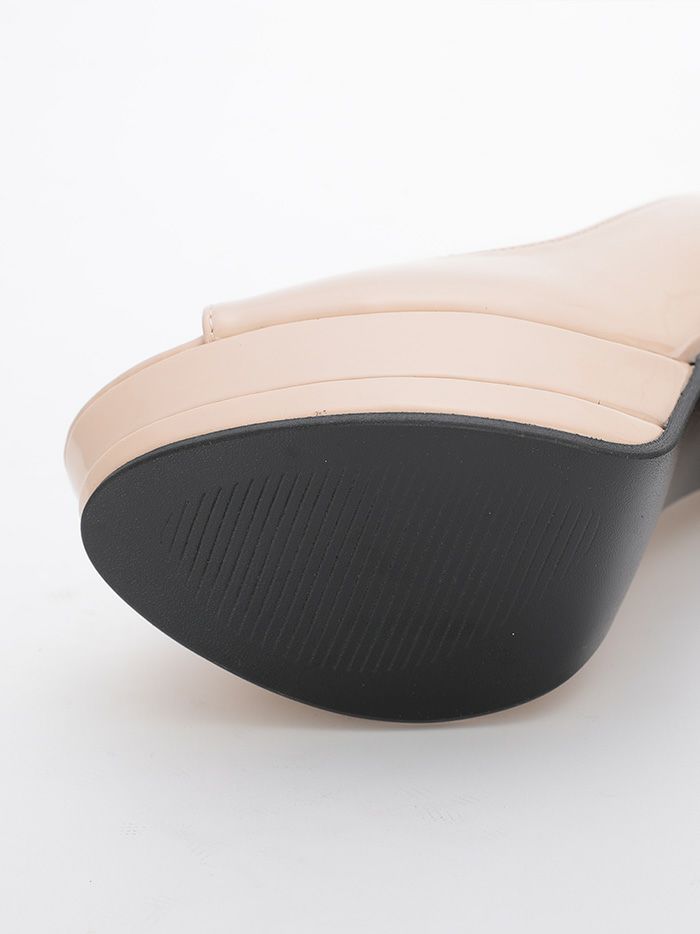6. BENEDETTA オープントゥ エナメル プラットフォーム パンプス ベージュ・ブラック vsh-am-4001
