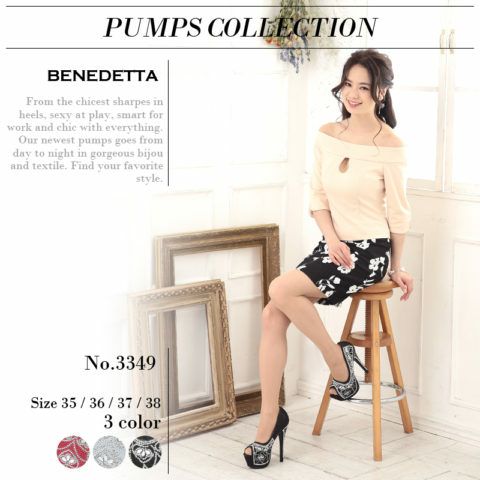 【2~5日前後で発送します!】 BENEDETTA レース ビジューパンプス シルバー・ゴールド vsh-am-4007