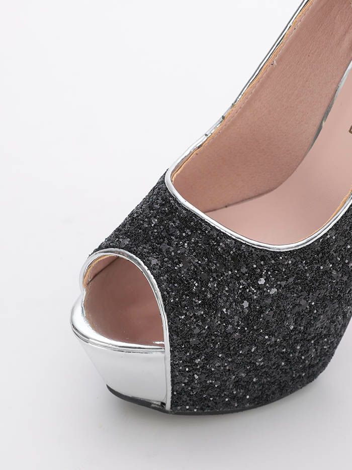 【お取り寄せ商品】 コメックス COMEX パンプス ラメ オープントゥ ハイヒール[ブラックシルバーグリッター]co-7243-2