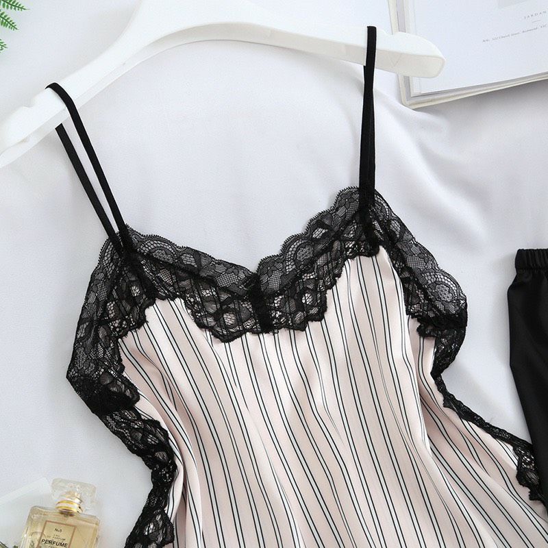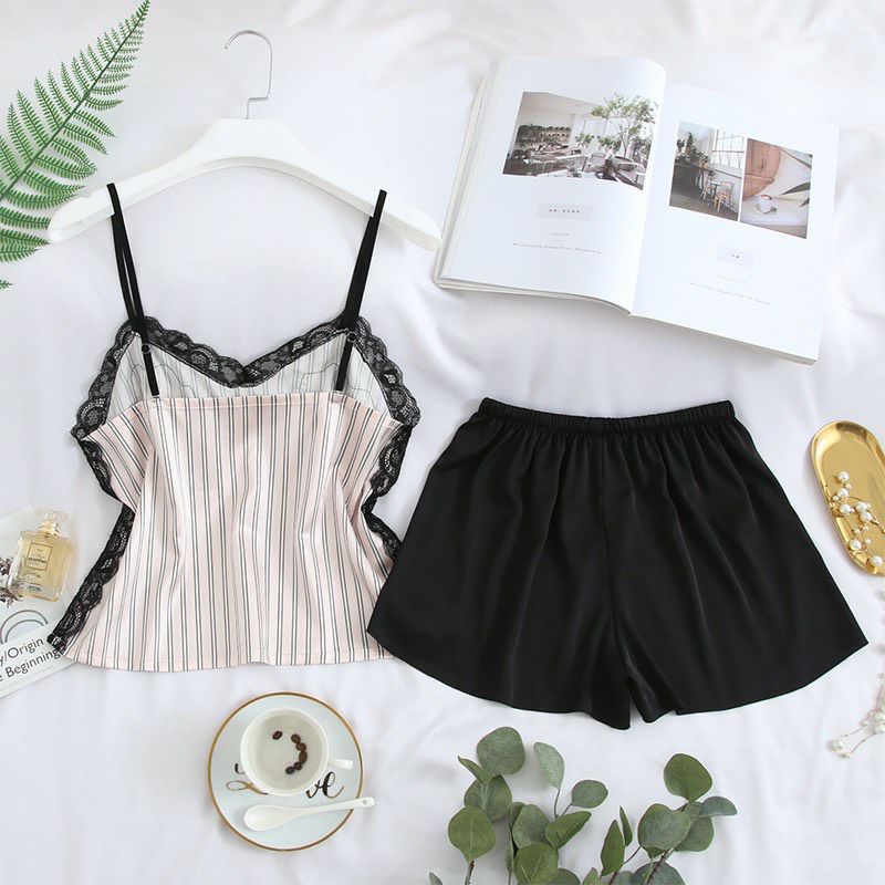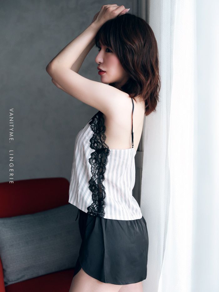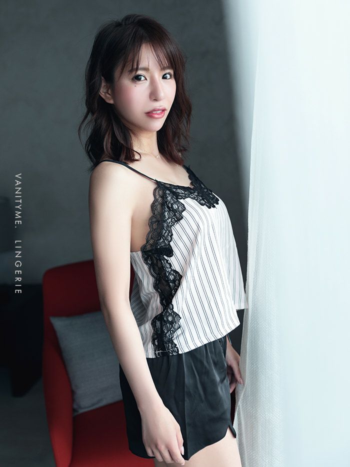 【即日発送】 【2点セット】ストライプ バイカラー レース キャミソール ショートパンツ ルームウエアーセット vuw-c0002