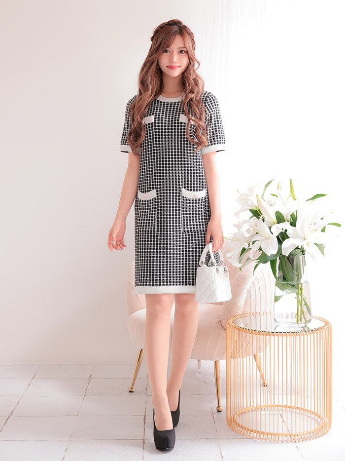 4. vanityME.onep 千鳥柄 ツイードワンピ マキシワンピース [ブラック] vim-c2381