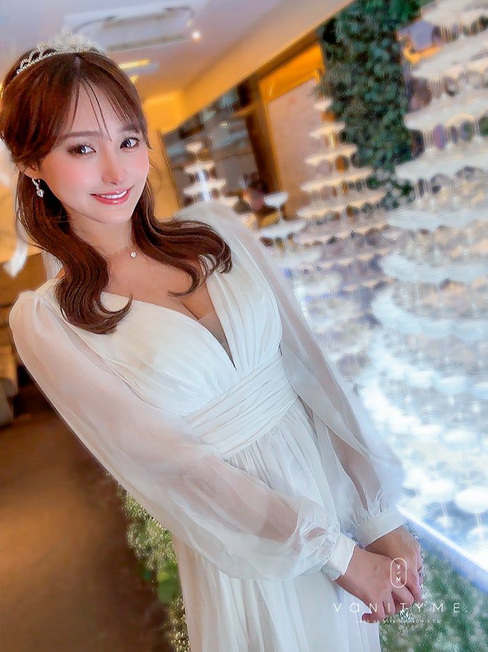 4. vanityME.couture. バニティミークチュール バースデードレス ホワイトシフォン ロングスリーブ ロングドレス ホワイト vctr-la-2221
