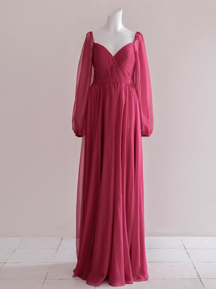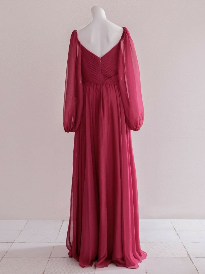 【即日発送】 vanityME.couture. バニティミークチュール オフショルダー シフォンドレス 長袖 Vネック ハイウエスト ロングドレス バーガンディ vctr-la-23103