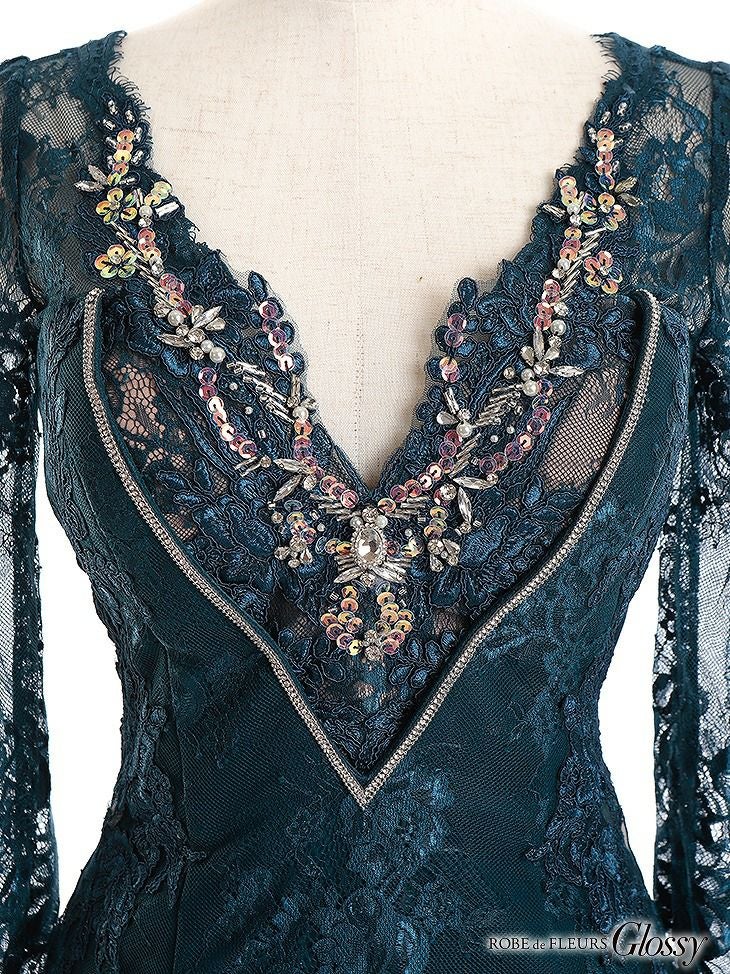 【ROBE de FLEURS SALE】Glossy ローブドフルールグロッシー 【XSサイズあり】ロングスリーブ×ビジュータイトミニキャバドレス gl2387-s25
