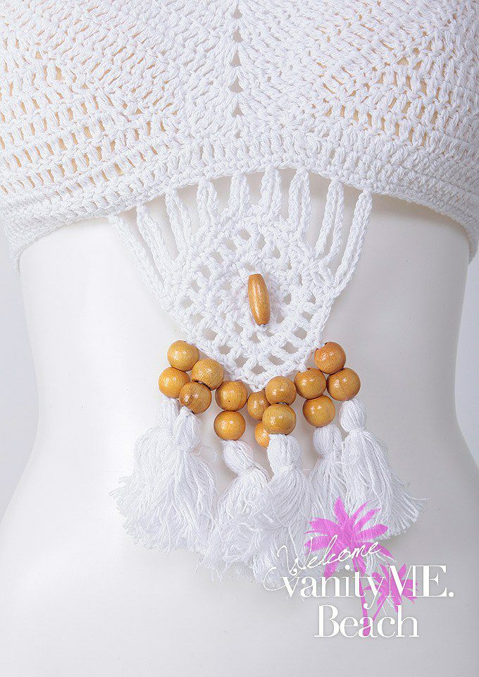 6. 【vanityME.OUTLET】【beach sale ビーチセール】水着 かぎ針あみ ハイネック ビキニ ドリームキャッチャー ホワイト vsw-p015-2