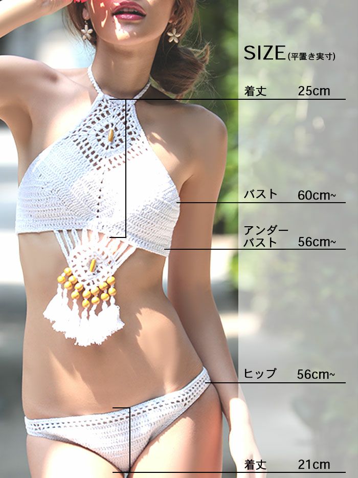 【vanityME.OUTLET】【beach sale ビーチセール】水着 かぎ針あみ ハイネック ビキニ ドリームキャッチャー ホワイト vsw-p015-2