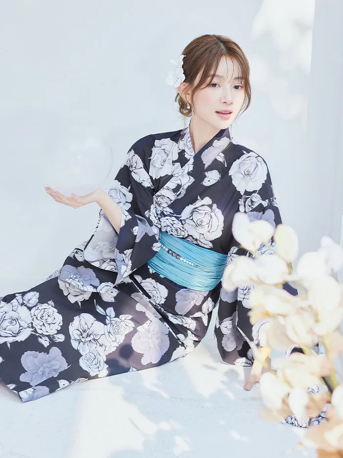 【4点セット】Malymoon マリームーン エレガンスモダン花模様2way浴衣 mlyk-25-10312