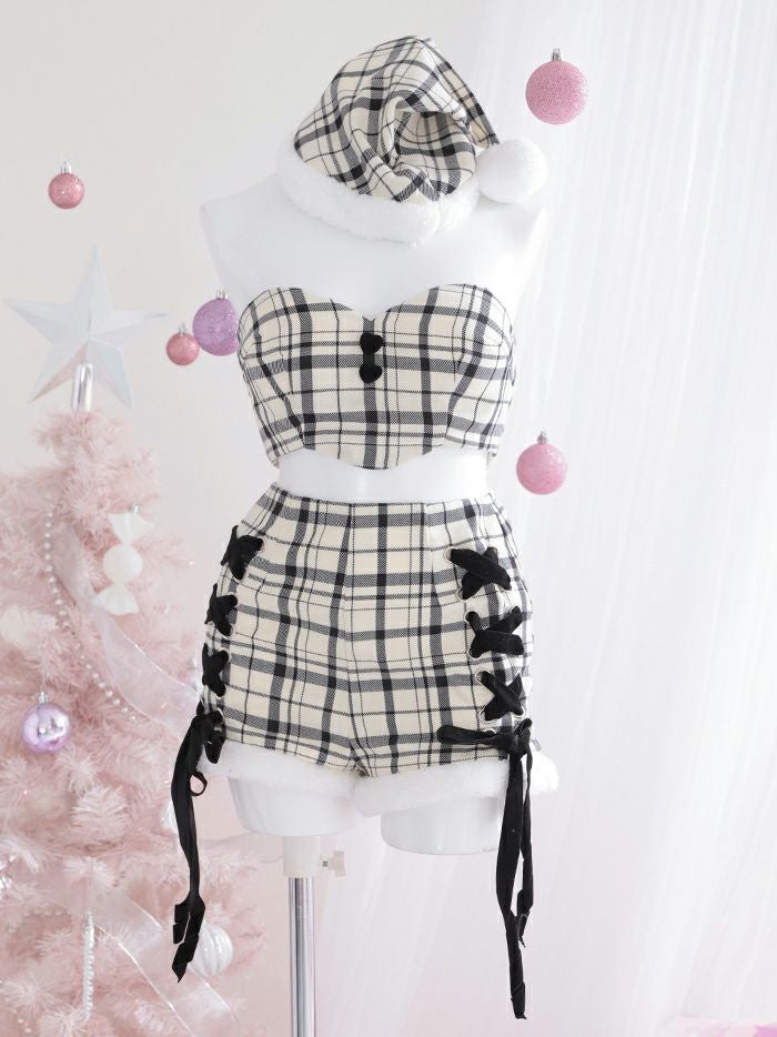 【即日発送**】 【7点セット】Malymoon マリームーン ミルキーニットダッフルチェックサンタ レッド mlcs25056