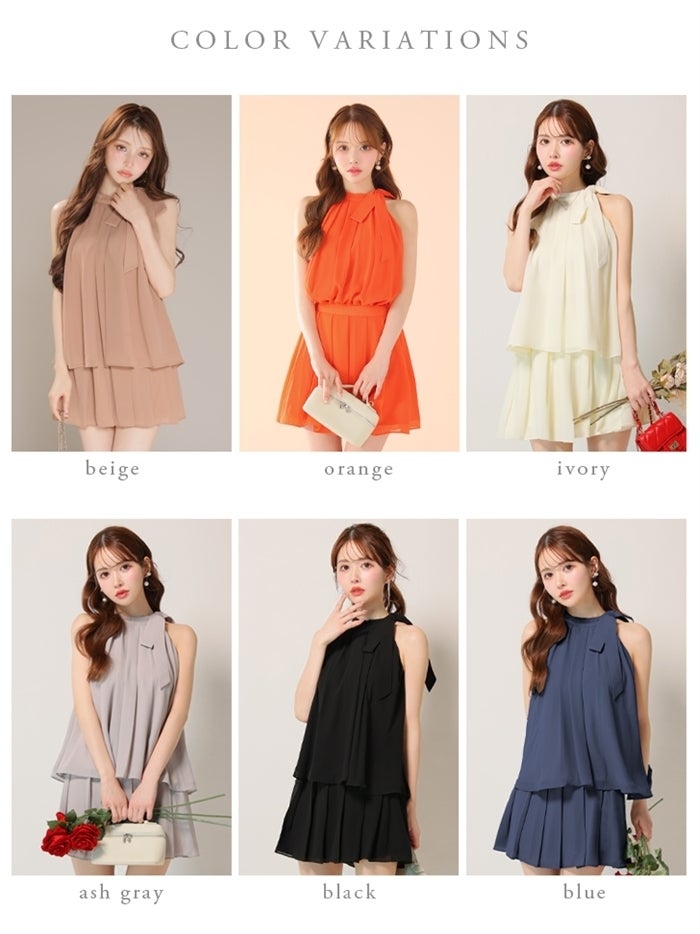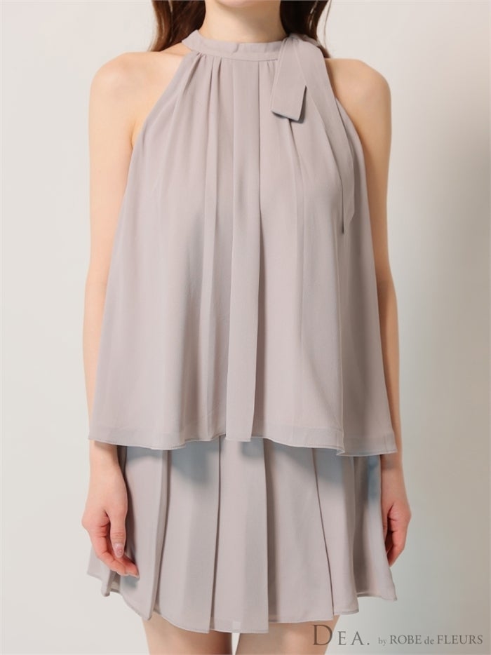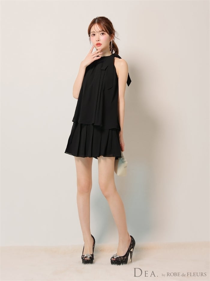 【即日発送】 IRMA イルマ シフォンティアード/ワンショル/ネックリボン/フレア ミニドレス ir51935