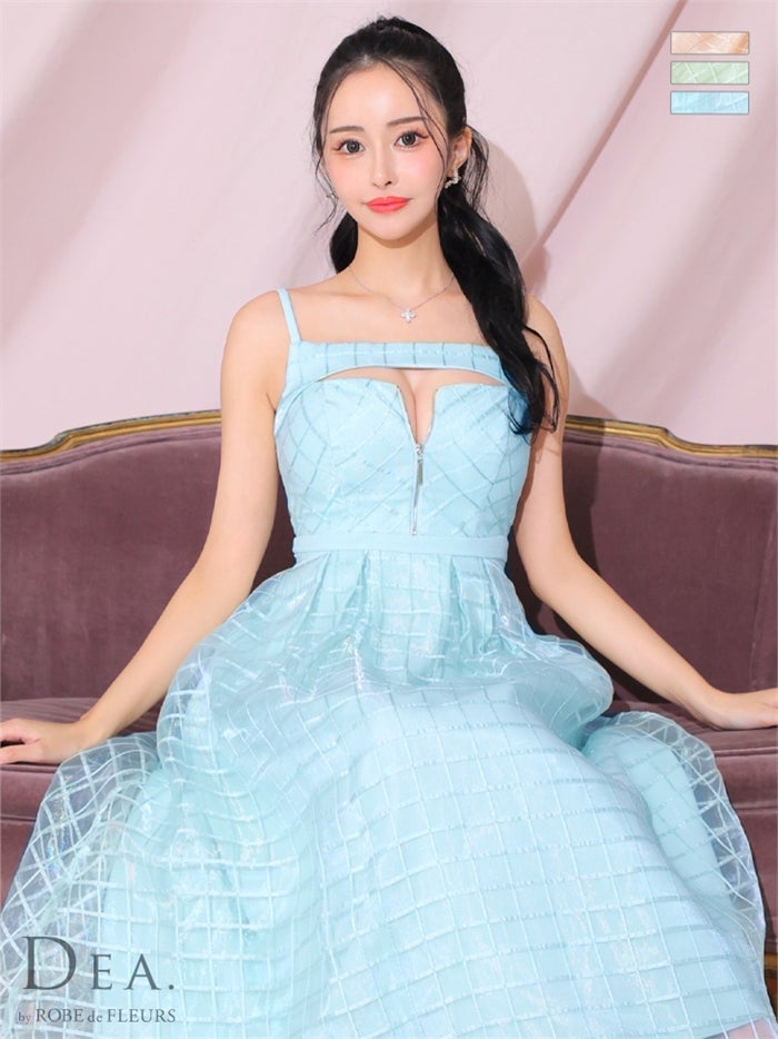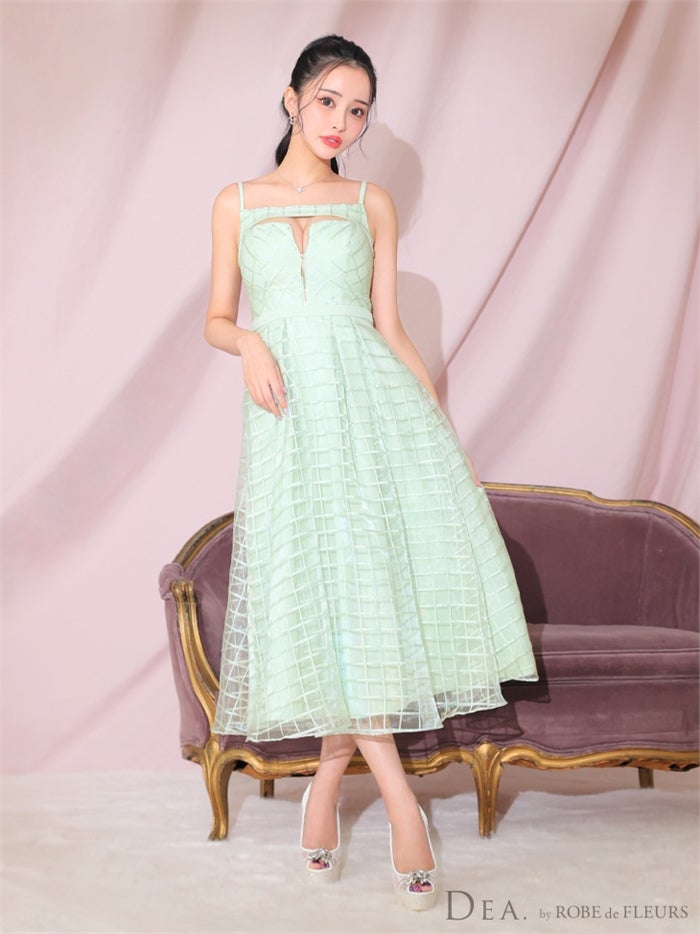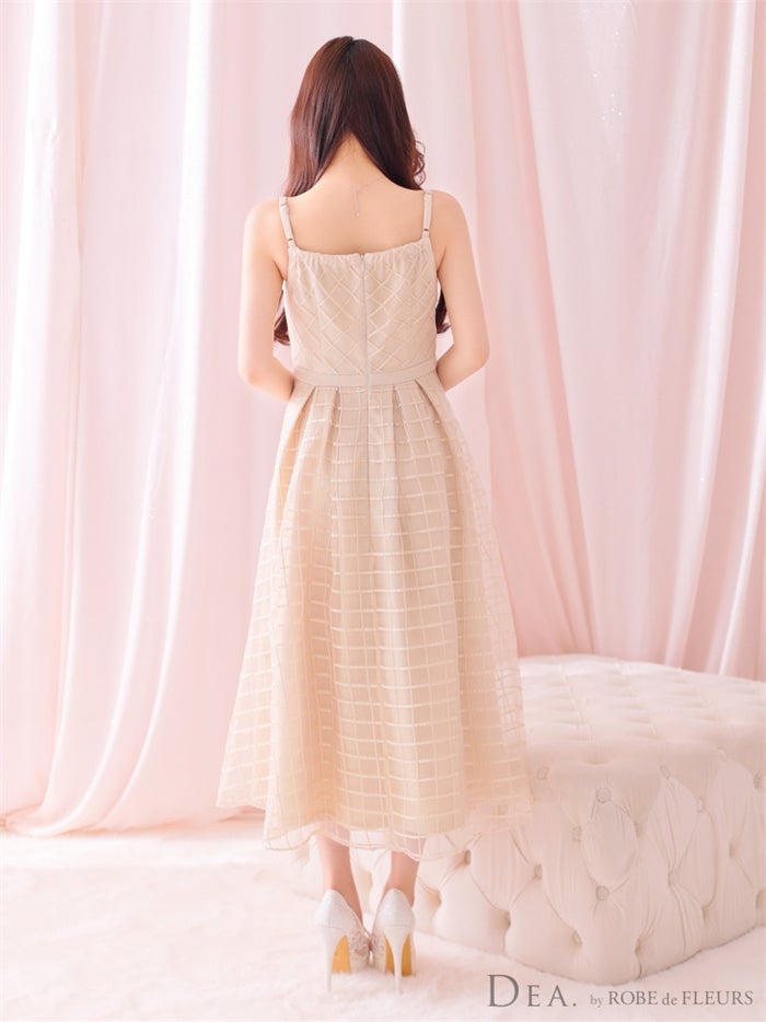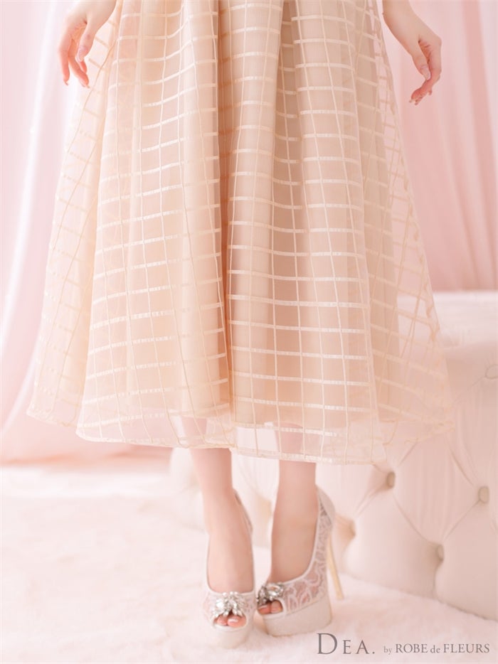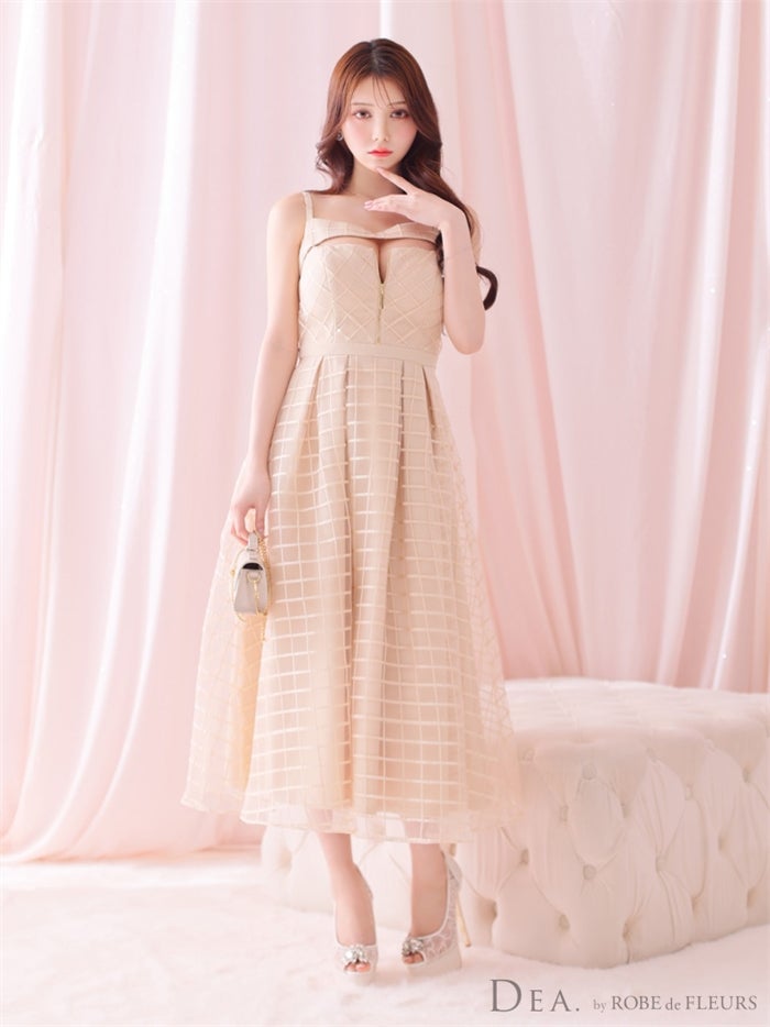 【即日発送|40%OFF】 【ROBE de FLEURS SALE】DEA. ディア バイ ローブドフルール チェックオーガンジーバストカットフレアロングキャバドレス de2986-s26