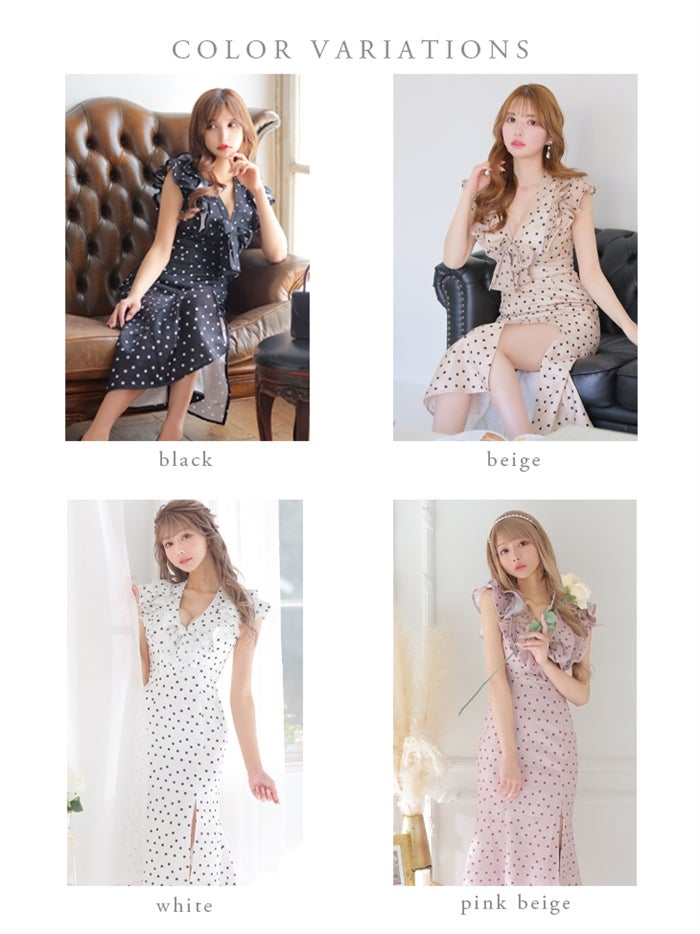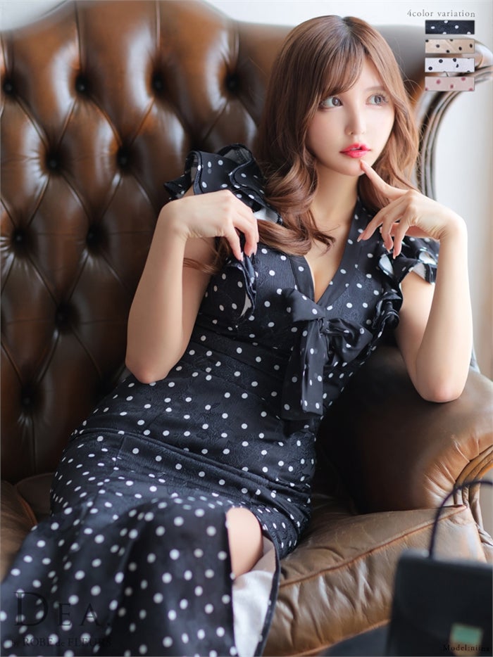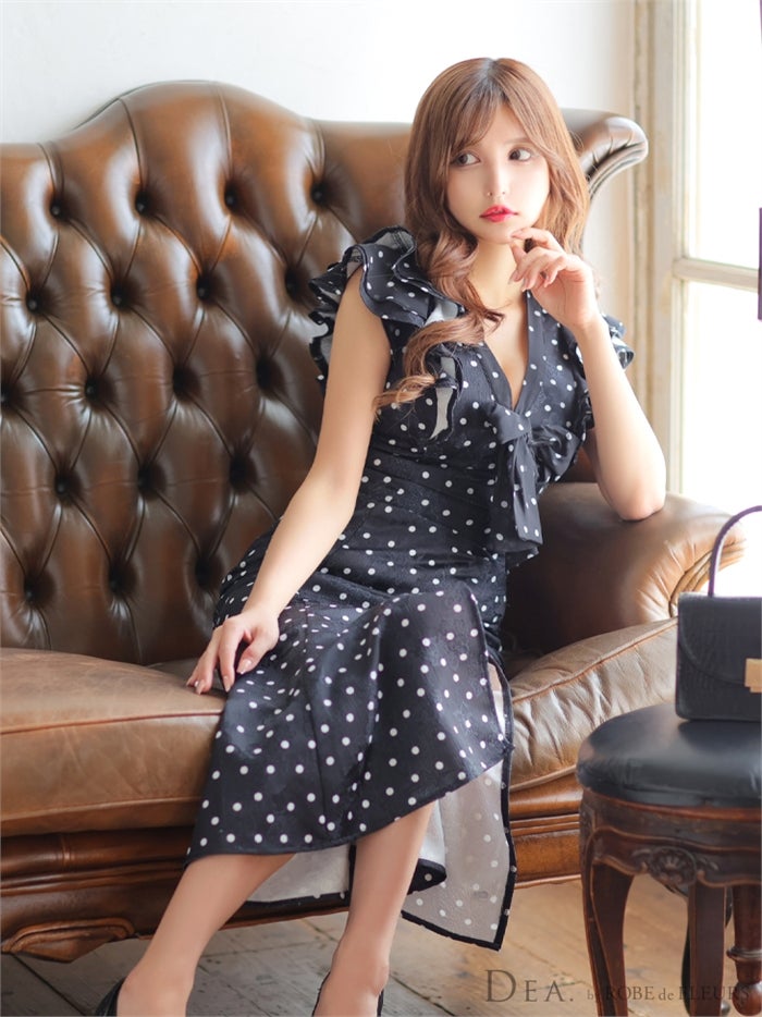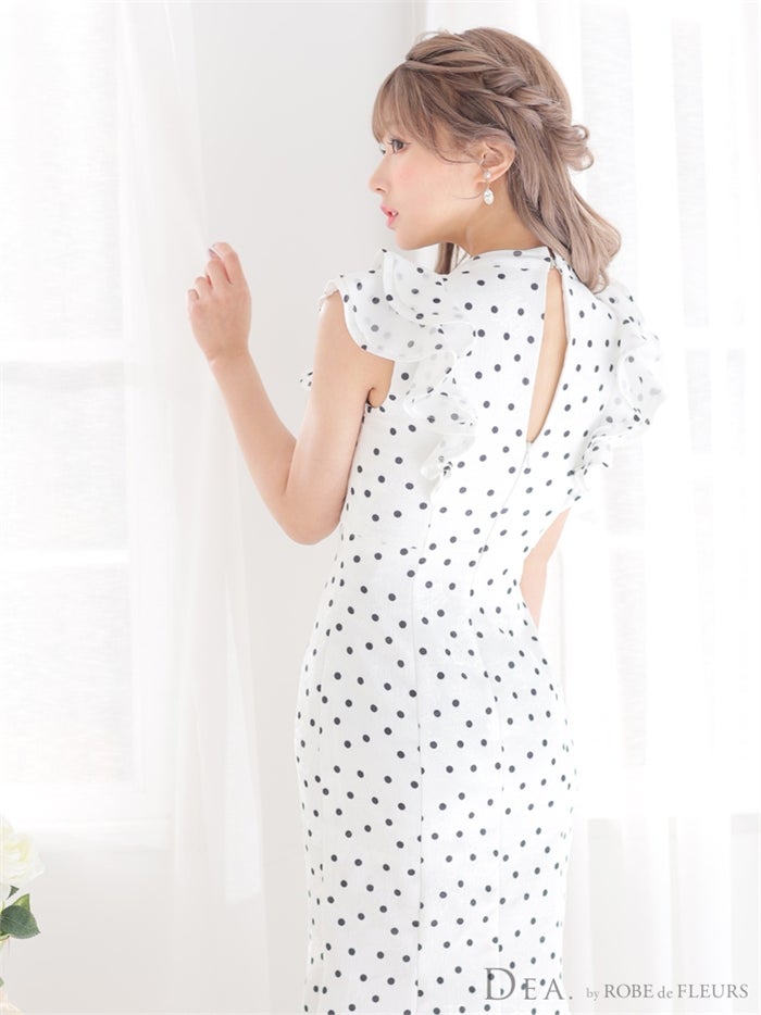 【即日発送|40%OFF】 【ROBE de FLEURS SALE】DEA. ディア バイ ローブドフルール フリルxリボンドットロングキャバドレス de2917-s26