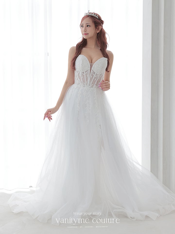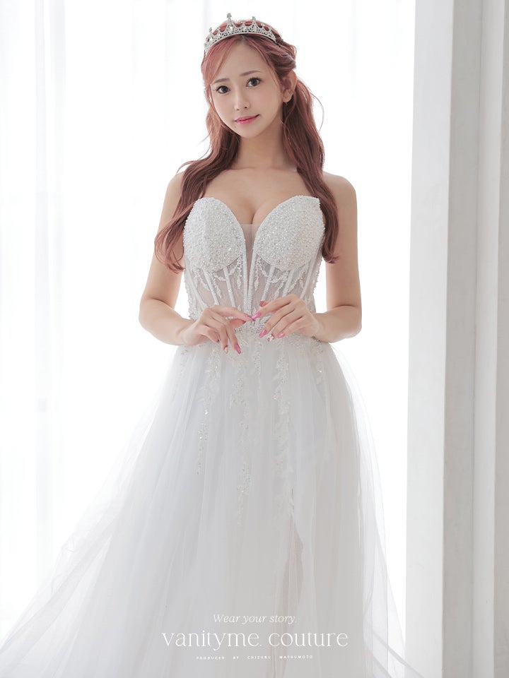 【即日発送】 vanityME.couture.バニティーミークチュール バストパール 刺繍レース Vカット バースデードレス インポート シンデレラ ロングドレス ホワイト vctr-l-2431-1
