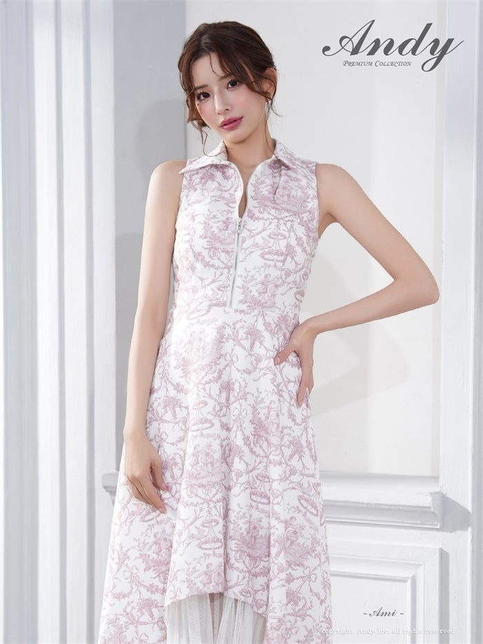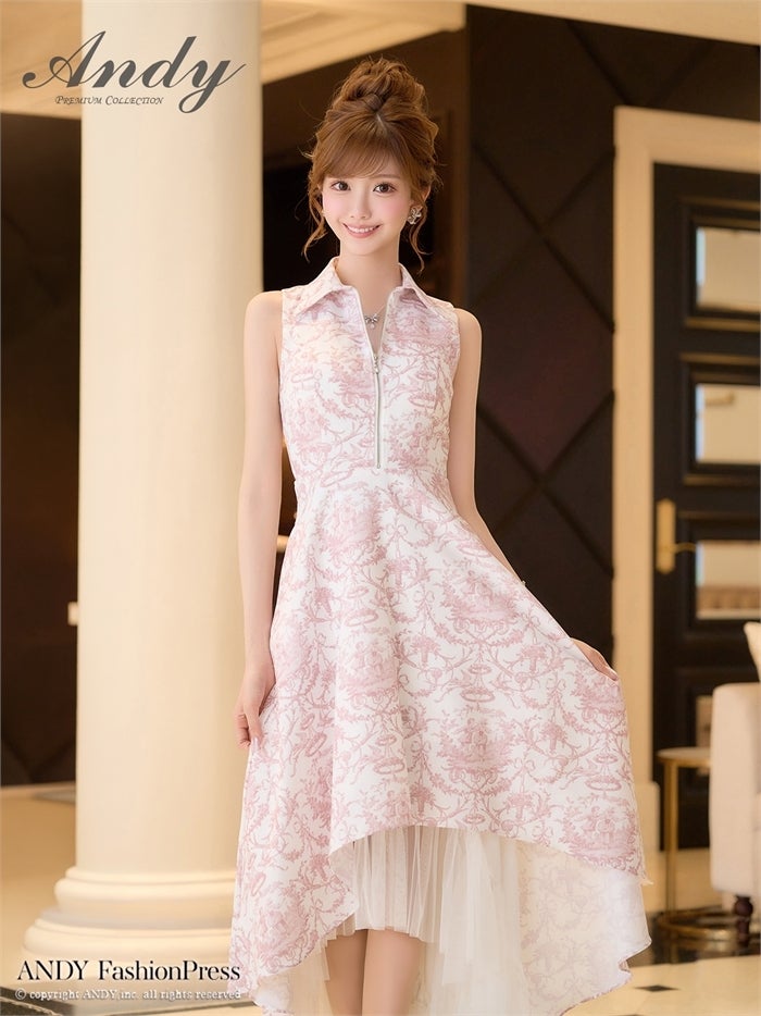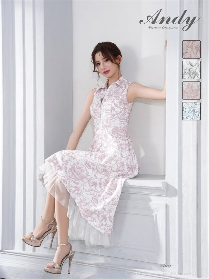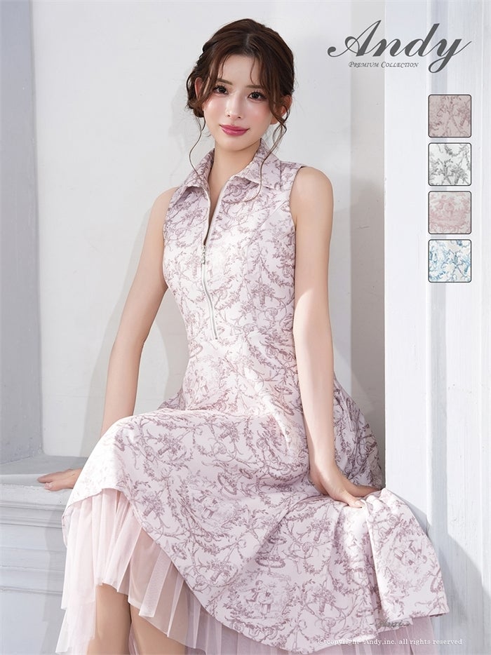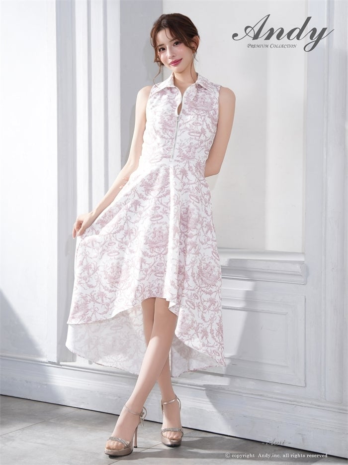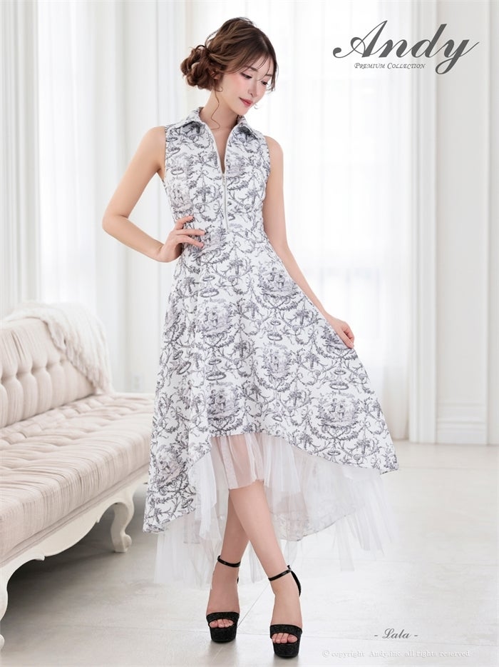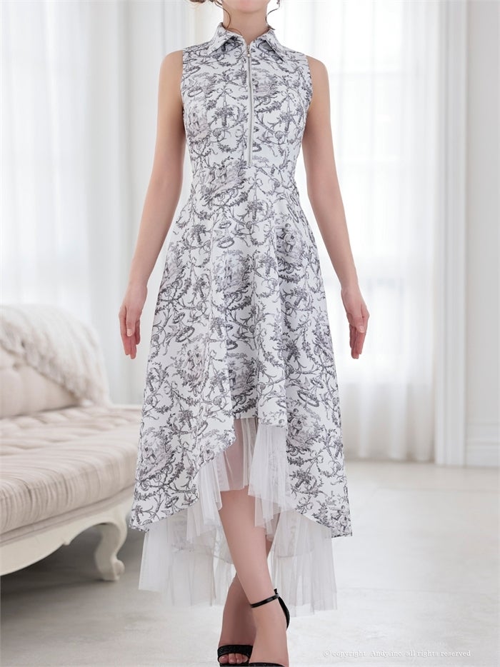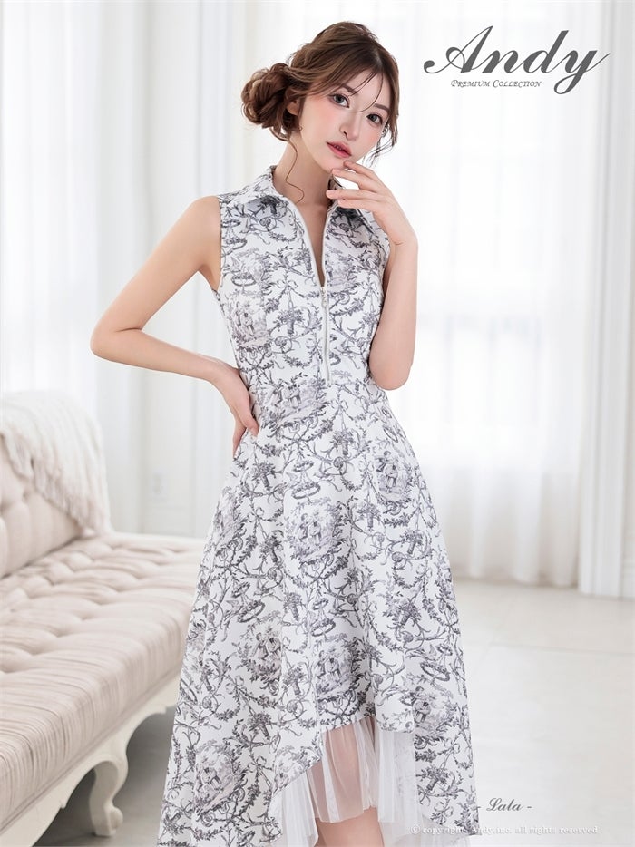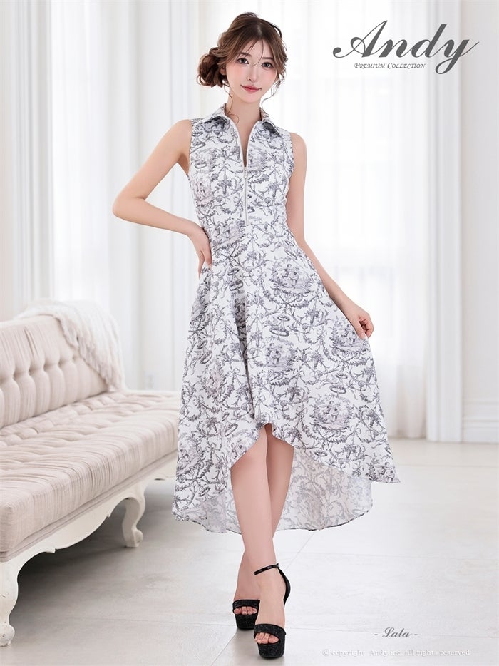 【即日発送】 気品溢れるトワルドジュイ柄。主役級の美脚シルエット Andy アンディ トワルドジュイ柄フロントジップ襟付きフィッシュテールキャバドレス【襟付き/ノースリーブ】 an-on3062