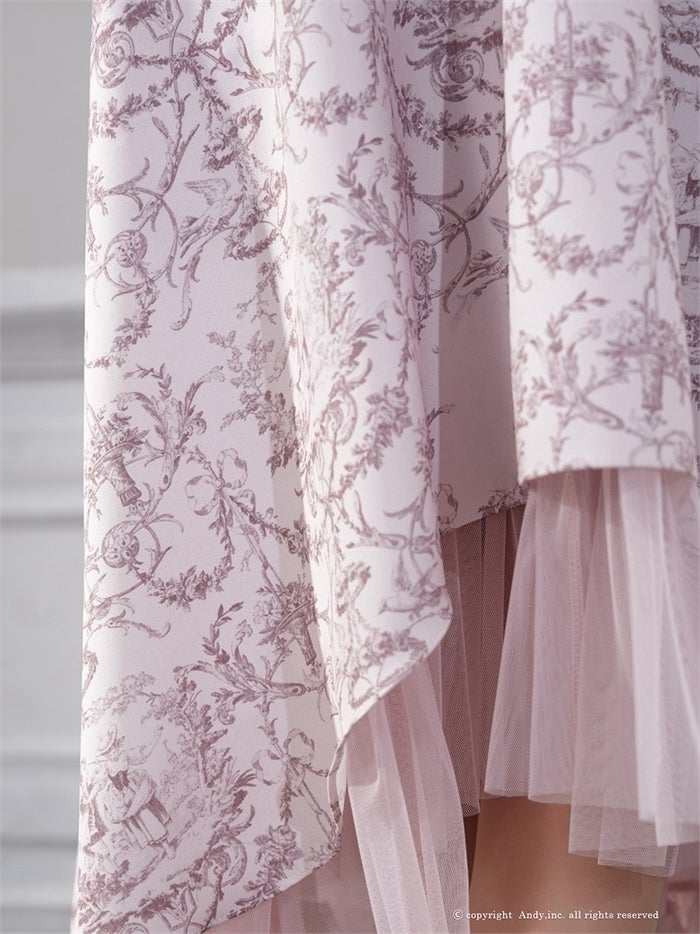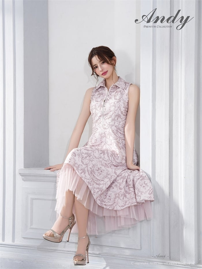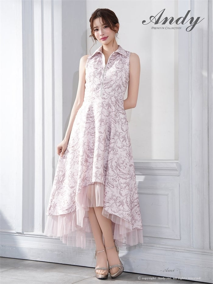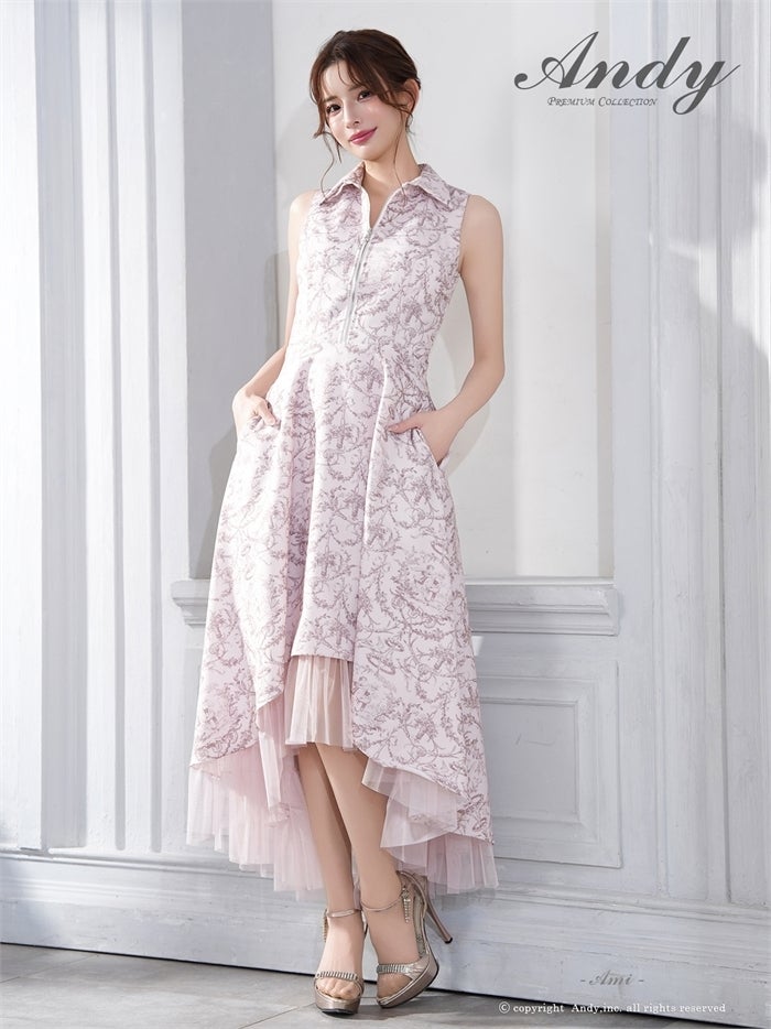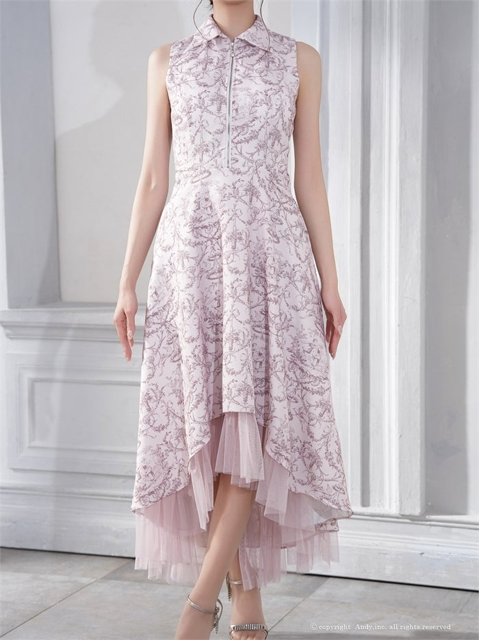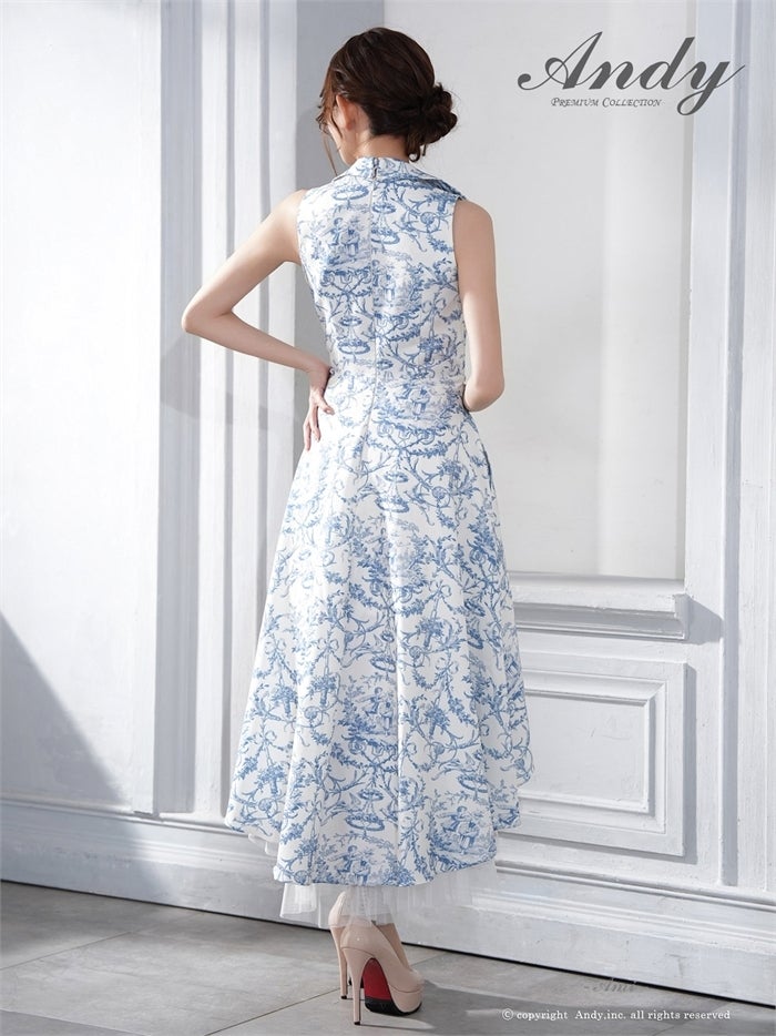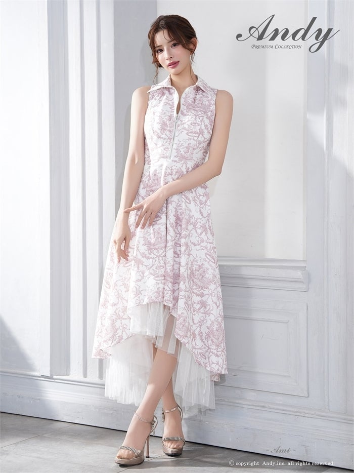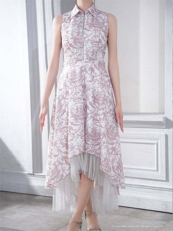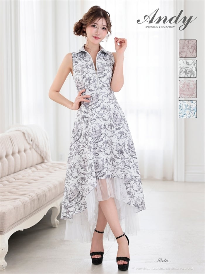 【即日発送】 気品溢れるトワルドジュイ柄。主役級の美脚シルエット Andy アンディ トワルドジュイ柄フロントジップ襟付きフィッシュテールキャバドレス【襟付き/ノースリーブ】 an-on3062