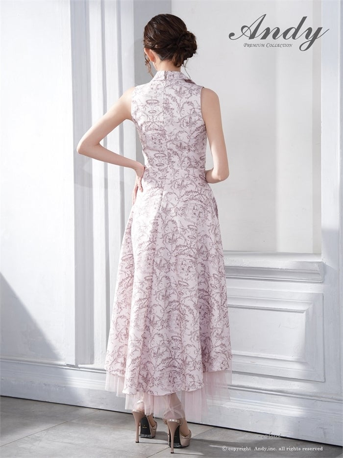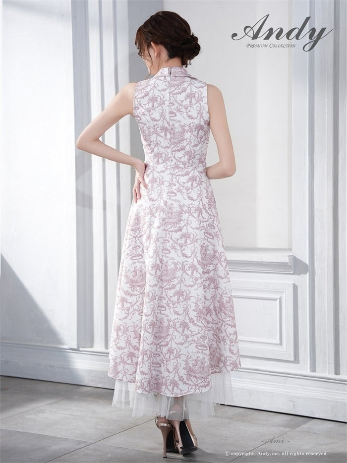 【即日発送】 Andy アンディ ボタニカル花柄 ホルターネック バストカットアウト フレア ミモレ丈 ミディアムドレス an-on3016