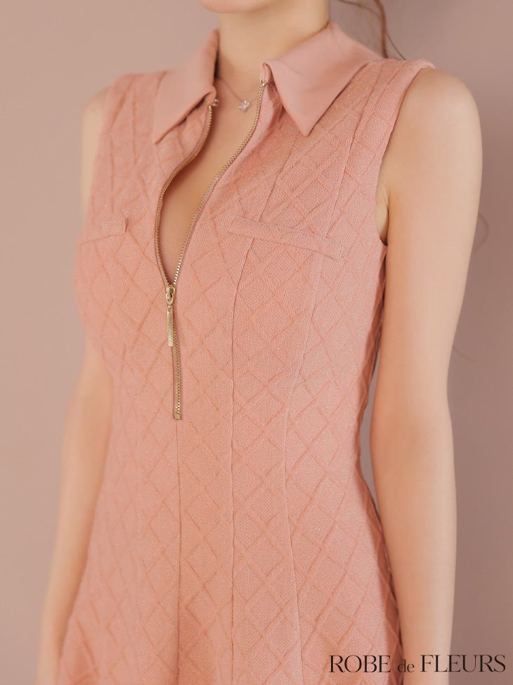 【即日発送】 DEA. ディア バイ ローブドフルール ローズピンク スーパーストレッチワッフルジップドレス de2702-9