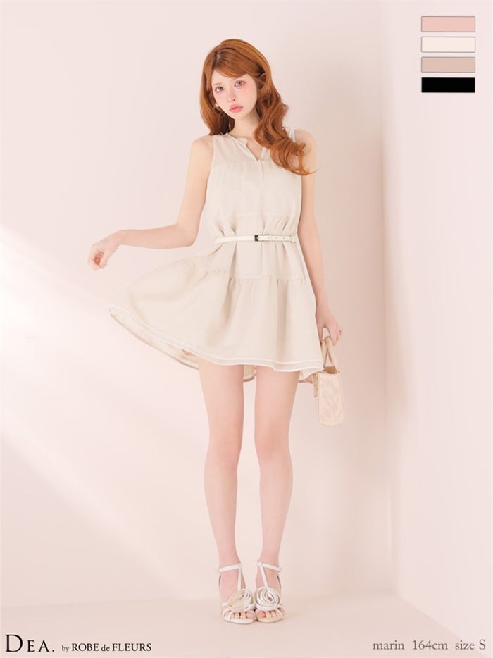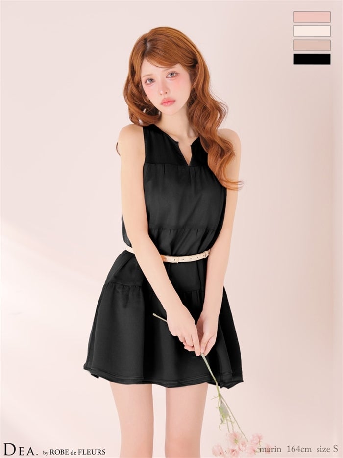 【即日発送】 DEA. ディア バイ ローブドフルール 【XS~Lサイズあり】ギャザーティアードシフォンフレアミニキャバドレス de4654