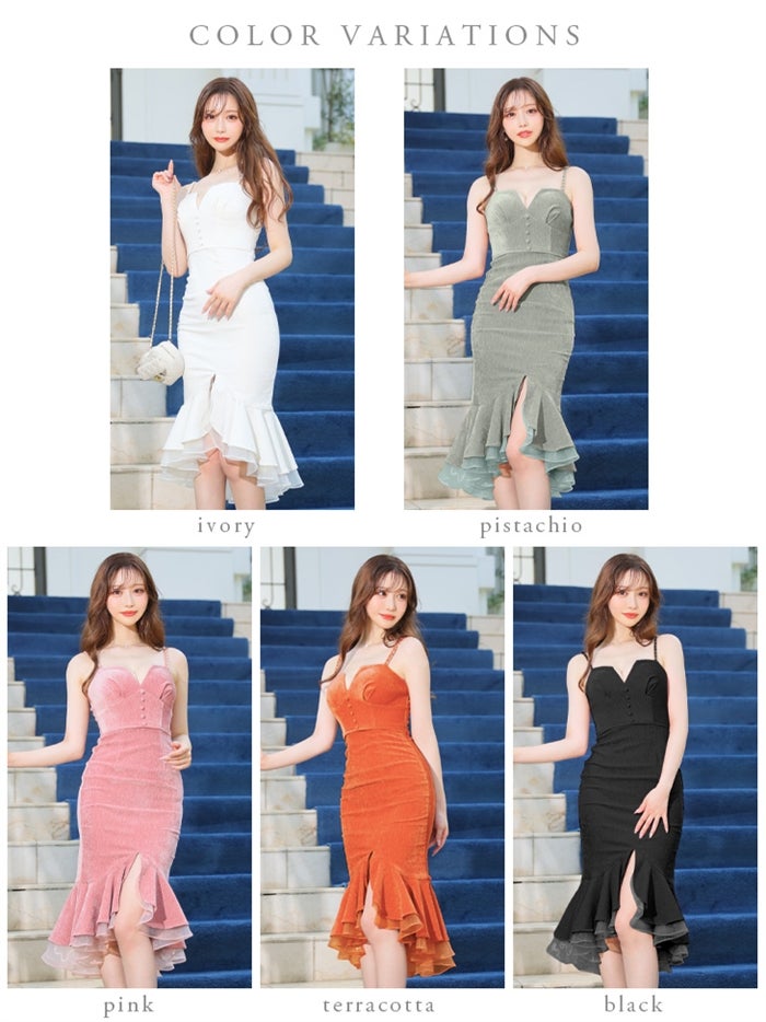 【即日発送|40%OFF】 【ROBE de FLEURS SALE】DEA. ディア バイ ローブドフルール スエードフロントボタンマーメイドキャミキャバドレス de2884-s26