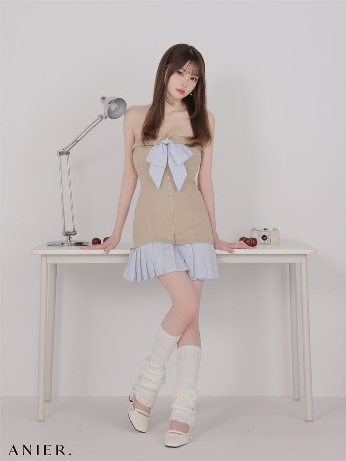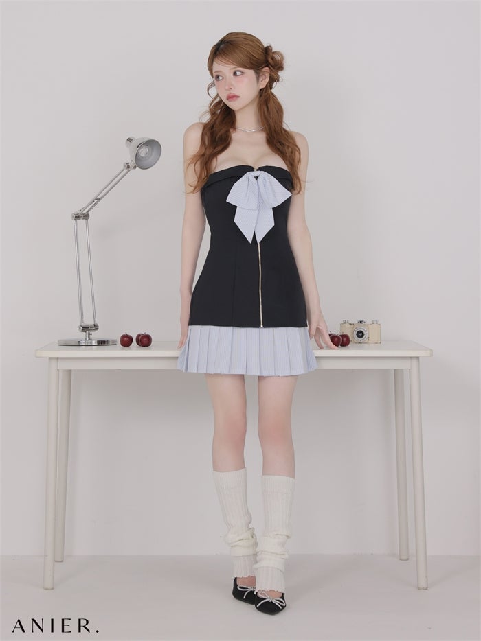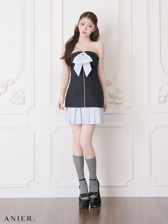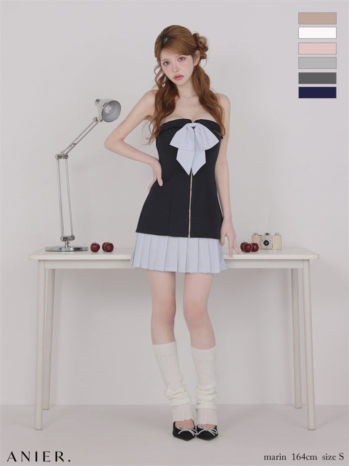 【即日発送】 ROBE de FLEURS anier.ROBE ローブドフルール アニエルローブ 【XSサイズあり】springstripe ribbon bare mini dress(anier4067) fm-anier4067
