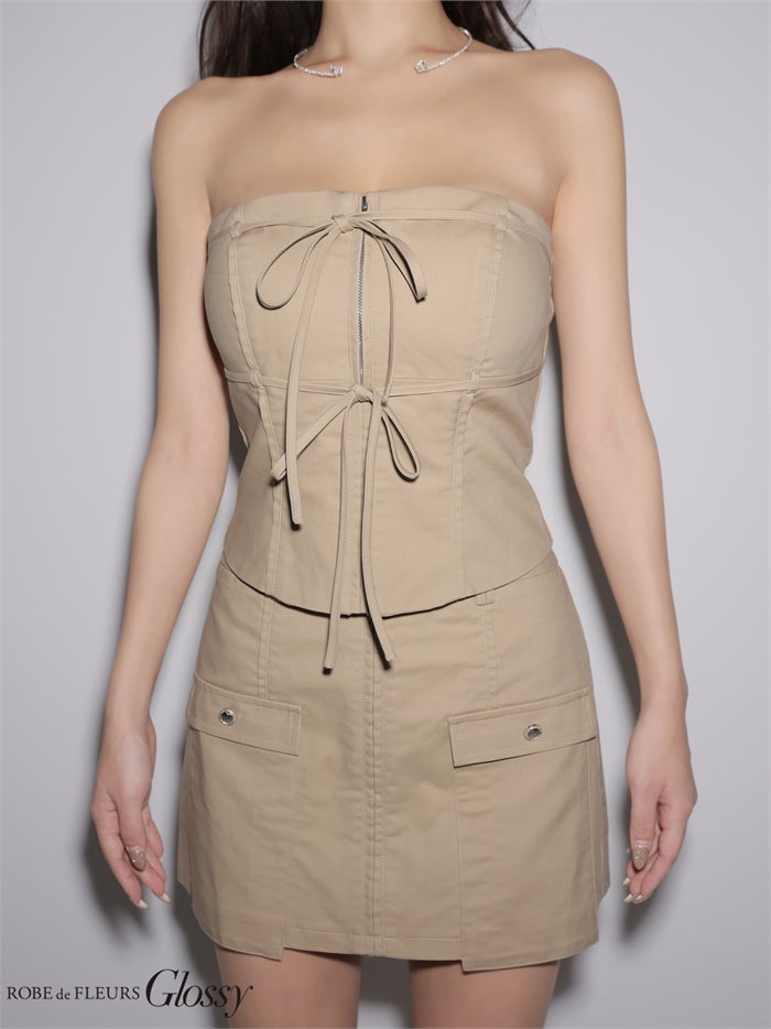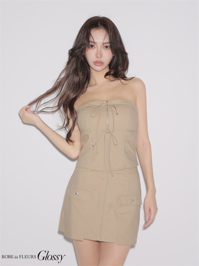 【即日発送】 Glossy ローブドフルールグロッシー 【XSサイズあり】 チェーンストラップフロントジップセットアップミニキャバドレス gl4160