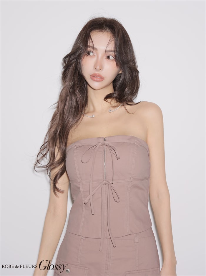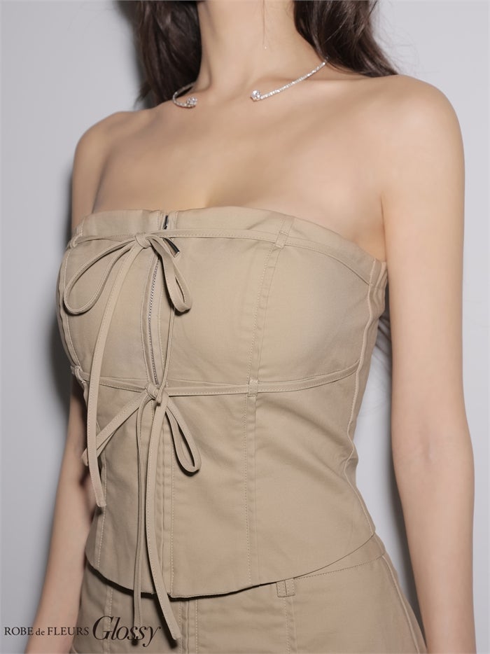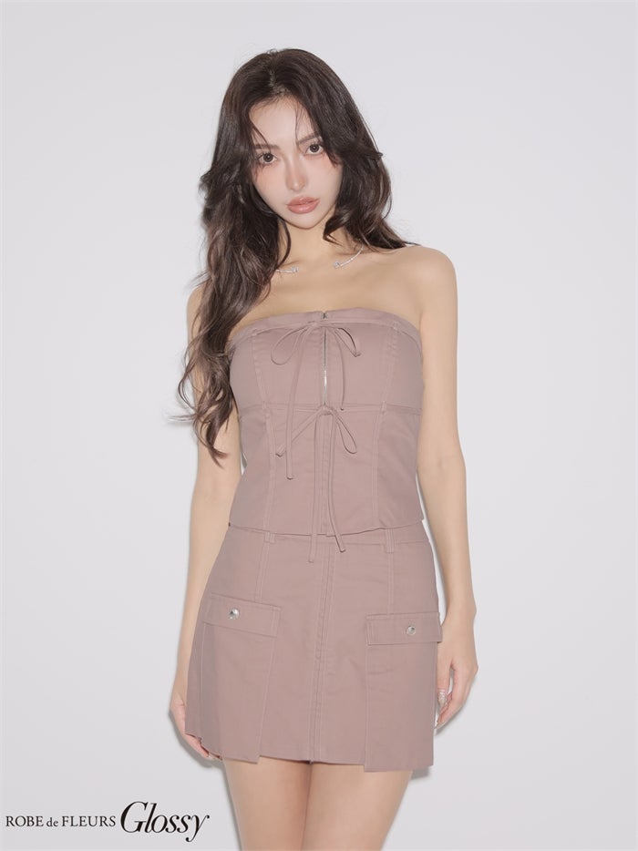 【予約商品*】 《ivory/yellow/gray:8月下旬頃発送予定》ROBE de FLEURS ローブドフルール バストリボンキュートセットアップタイトミニキャバドレス fm3453-c