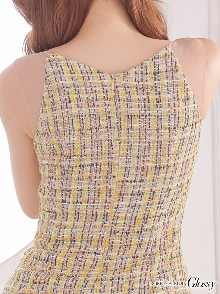 【即日発送|MAX66%OFF】 【ROBE de FLEURS SALE】Glossy ローブドフルール グロッシー【XSサイズあり】ショルダーチュールxツイードタイトミニドレス gl2633-s25