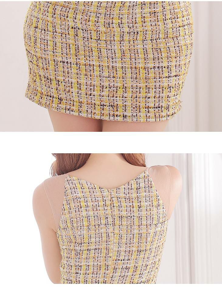 【即日発送】 ERUKEI エルケイ グリーン ノースリーブ・ベルト風・サマーツイード・Aライン・ミニドレス・ワンピース ek-e24208