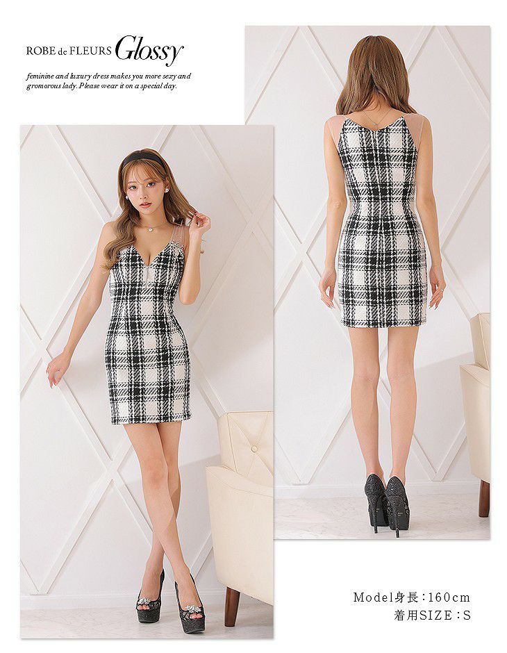 【即日発送|MAX66%OFF】 【ROBE de FLEURS SALE】Glossy ローブドフルールグロッシー 【XSサイズあり】バックチュールノースリーブタイトミニキャバドレス gl2629-s25