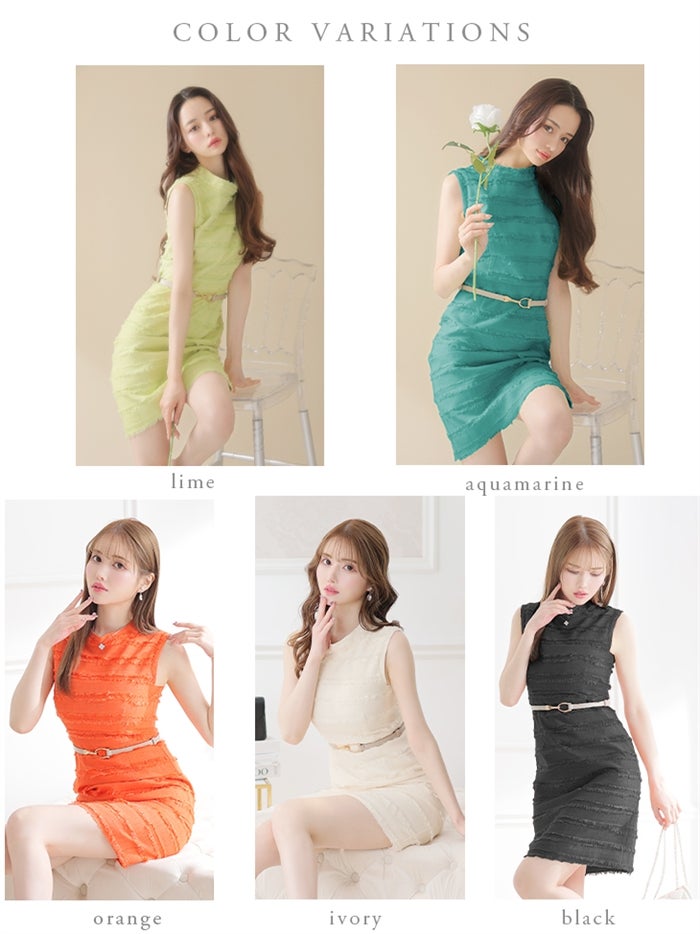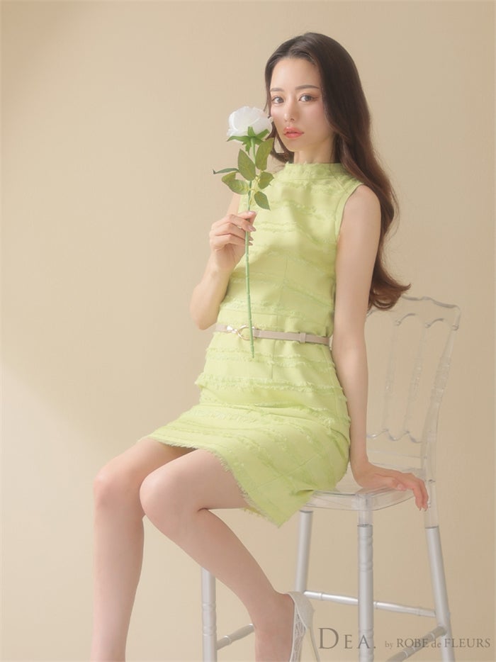 【即日発送|40%OFF】 【ROBE de FLEURS SALE】DEA. ディア バイ ローブドフルール 【ベルト付き】フリンジ×ベルトシンプルキャバドレス de2741-s26