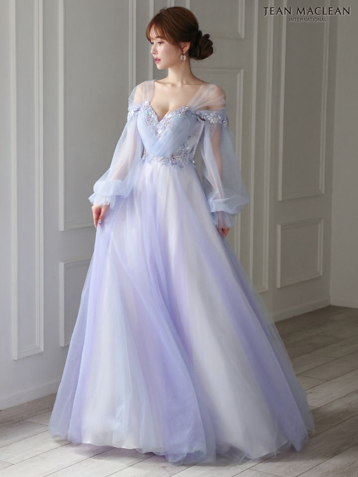 【一部予約商品】 《ブルーラベンダー:4月下旬入荷予定》JEAN MACLEAN ジャンマクレーン ヴェールスリーブ/フラワービーズ刺繍/姫/ロングドレス ja51908